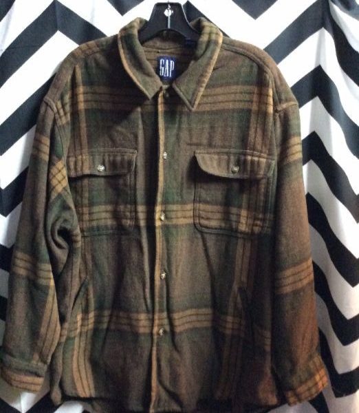 GAP FLANNEL SHIRT – HEAVY – WOOL BLEND – PLAID DESIGN – OLD SKOOL