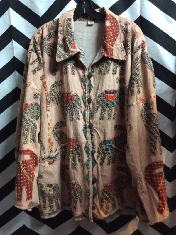 INDIA COTTON SHIRT W/ ELEPHANT APPLIQUE DESIGN