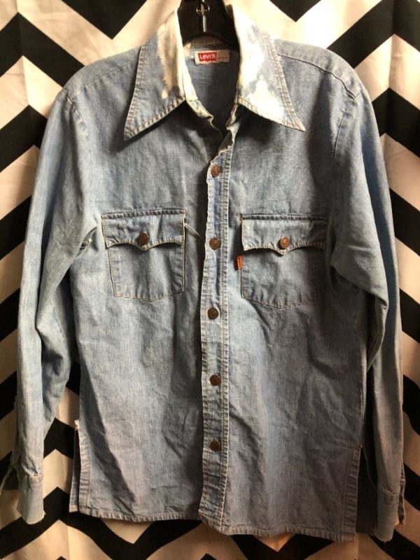 LEVIS DENIM SHIRT BLEACHED COLLAR WESTERN STYLE