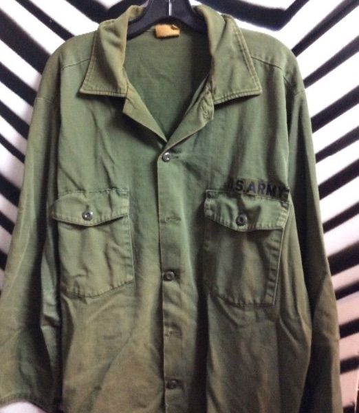 US ARMY MILITARY SHIRT, LONG SLEEVE BUTTON-UP, GREEN, SIZE L