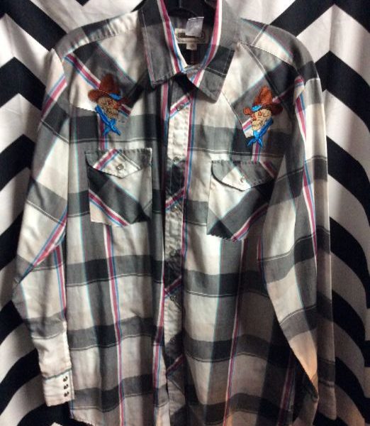 LS BD PLAID WESTERN SHIRT EMBROIDERED COWBOY SKULL