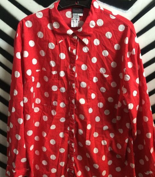 Classic shirt, long sleeve button-up, polka dot design, red/white, size L