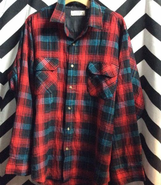 100% WOOL MADE IN USA BUFFALO PLAID FLANNEL SHIRT DOUBLE FRONT POCKET