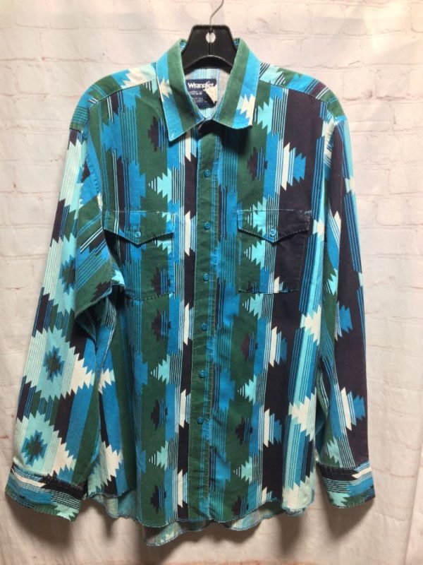 WRANGLER SHIRT W/ AZTEC DESIGN PRINT & 2 FRONT BUTTON-UP POCKETS