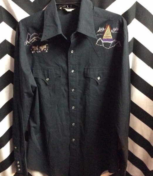 WESTERN SHIRT – PEARL SNAPS – EMBROIDERED BUFFALOS W/TIPIS DESIGN