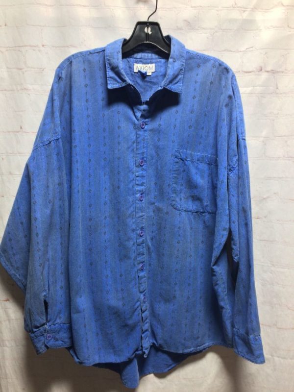 Axiom shirt, long sleeves, button-up, small diamond print, single front pocket, blue, size XL