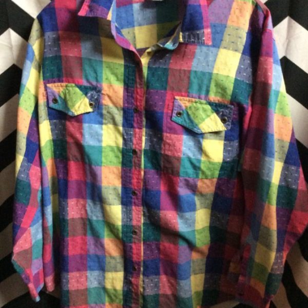 1950’S-60’S CHECKERED KNIT COLLAR KID SHIRT BUTTON SHOULDER