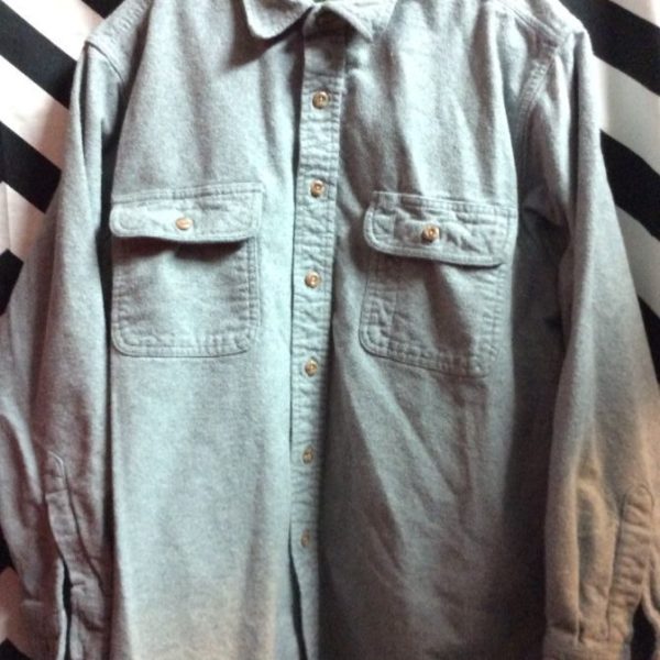 Field & Stream shirt, long sleeve, button-up, soft wool, front pockets, gray, size L