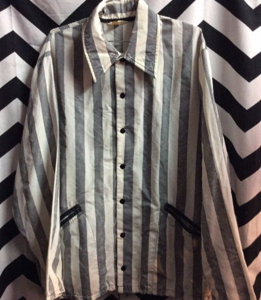 Windbreaker jacket, button-up, vertical striped design, white/black, size L