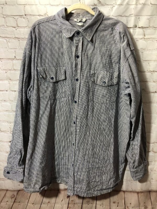 AS IS – SOLID 1950S CUSTOM TAILORED GABERDINE LONG SLEEVE BUTTON UP COLLARED SHIRT W/ FOLD OVER POCKETS