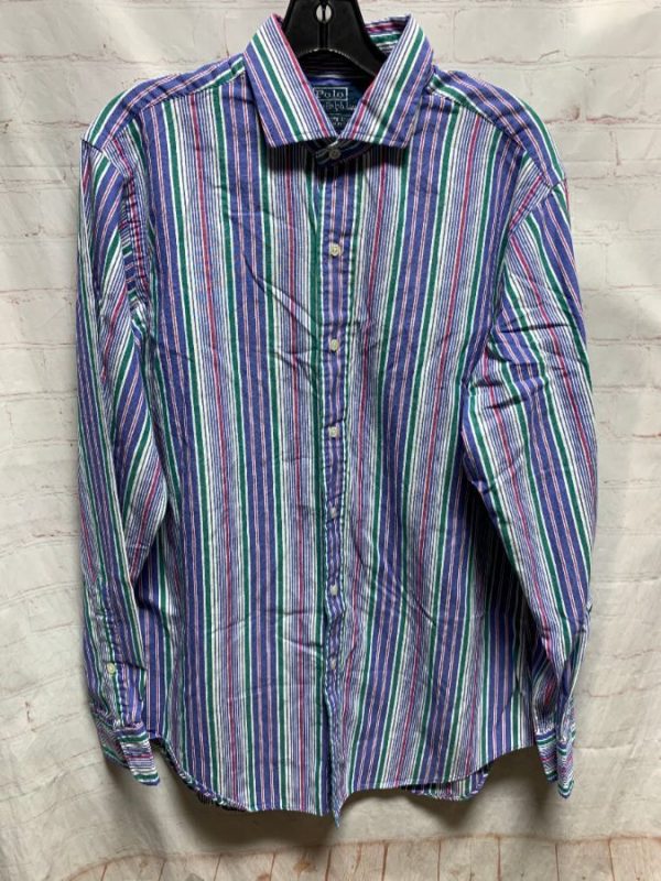 VERTICAL STRIPED PRINT COTTON POLO DRESS SHIRT