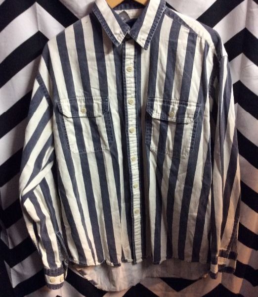 1990’s printed shirt, vertical striped shirt, long sleeve, button-up, grey/white, size L