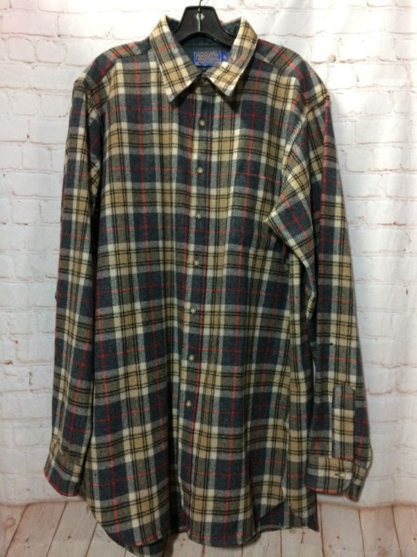 WOOL PLAID DESIGN FLANNEL SHIRT PENDLETON LONG CUT