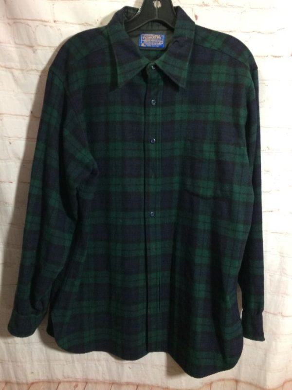 PENDLETON WOOL LONG SLEEVE BUTTON UP FLANNEL W/ EXTENDED TAILORED SIDES