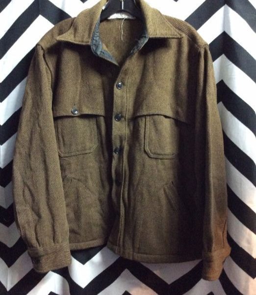 Shirt/jacket, long sleeve, button-up, wool, herringbone, tan/black. size XL