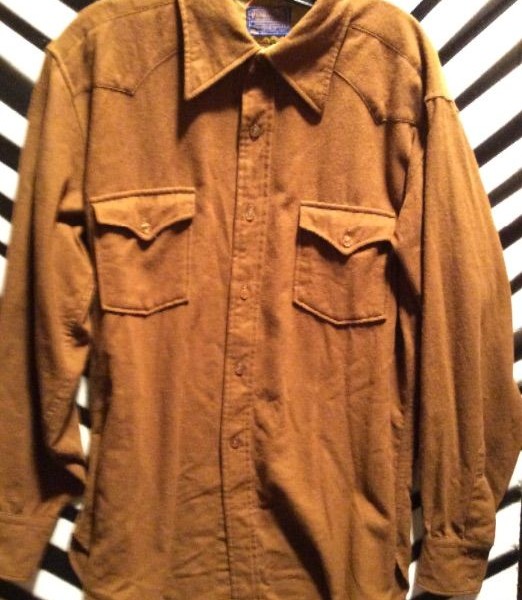 AS IS – SOLID 1950S CUSTOM TAILORED GABERDINE LONG SLEEVE BUTTON UP COLLARED SHIRT W/ FOLD OVER POCKETS