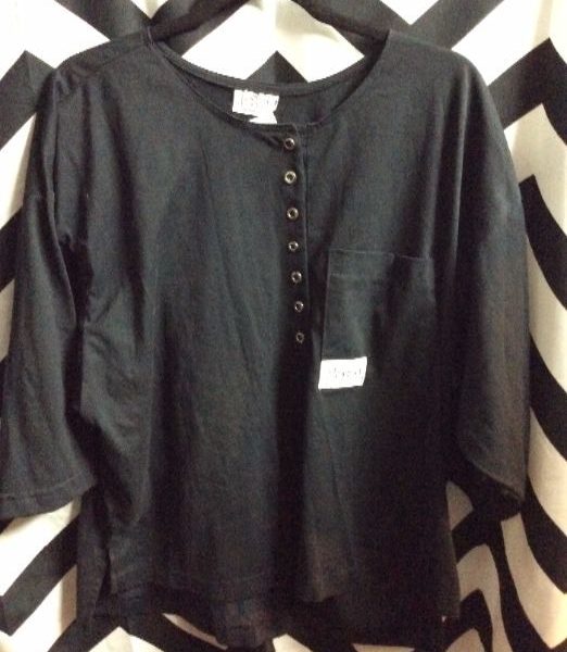 Top with pocket, cotton, long sleeves, partially buttoned with snap buttons, boxy, black, size L