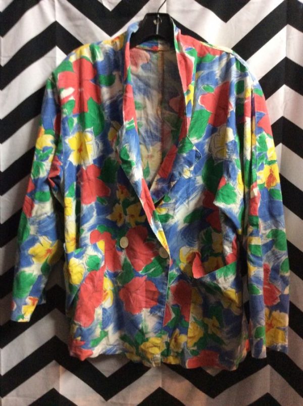 JACKET – BLAZER STYLE – BUTTON-UP W/OVER SIZED BUTTONS – THIN – FLORAL DESIGN PRINT