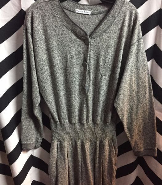 JUMPSUIT, JERSEY STYLE, LONG SLEEVES, BUTTON-UP, GRAY, SIZE L