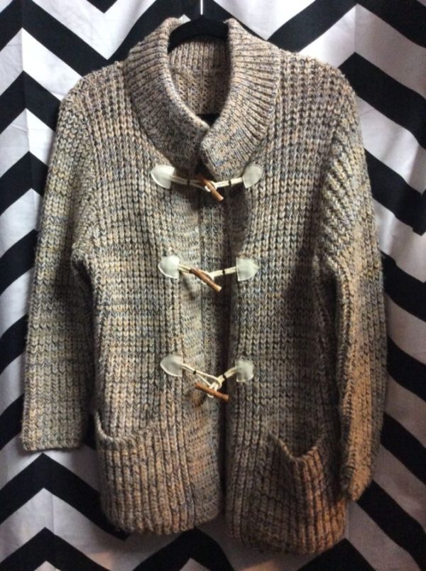 KNIT SWEATER W/ TOGGLE BAMBOO CLOSURE