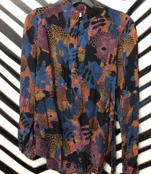 SHEER V NECK SHIRT W/ASIAN FLORAL PRINT