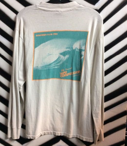 Vintage “8th Annual Surfing Competition” Long sleeve T-shirt, white/light blue, size L