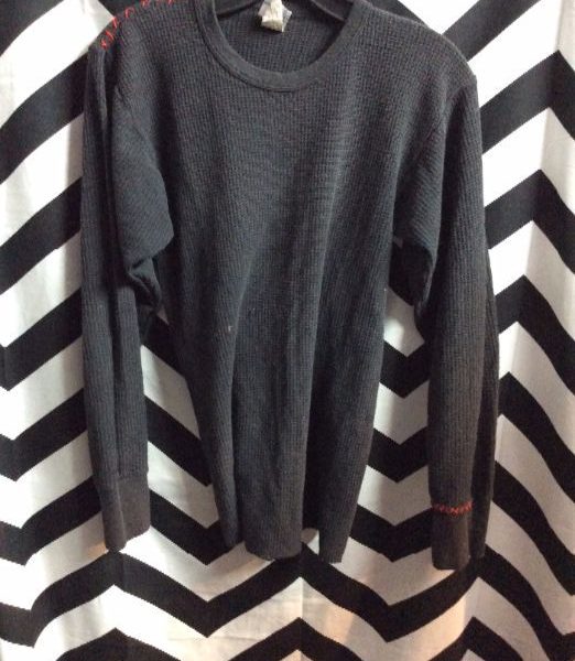 Thermal pullover shirt, long sleeve, hand stitched design, black/red, size M