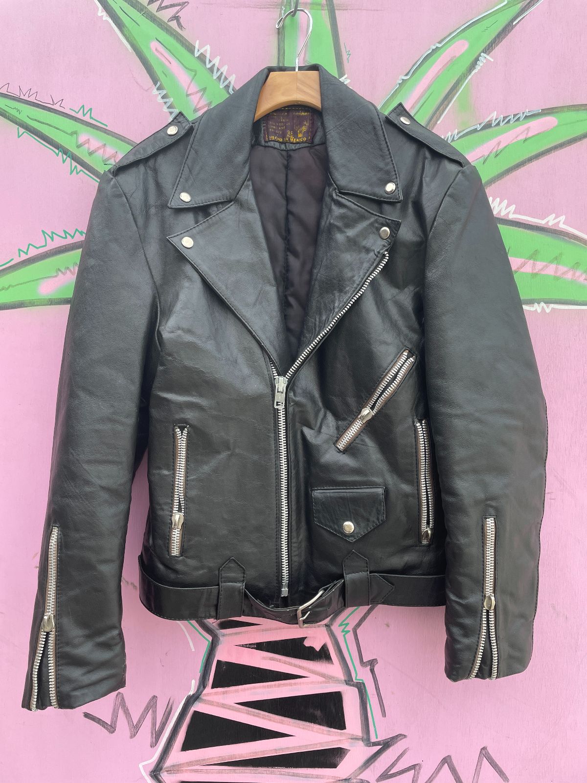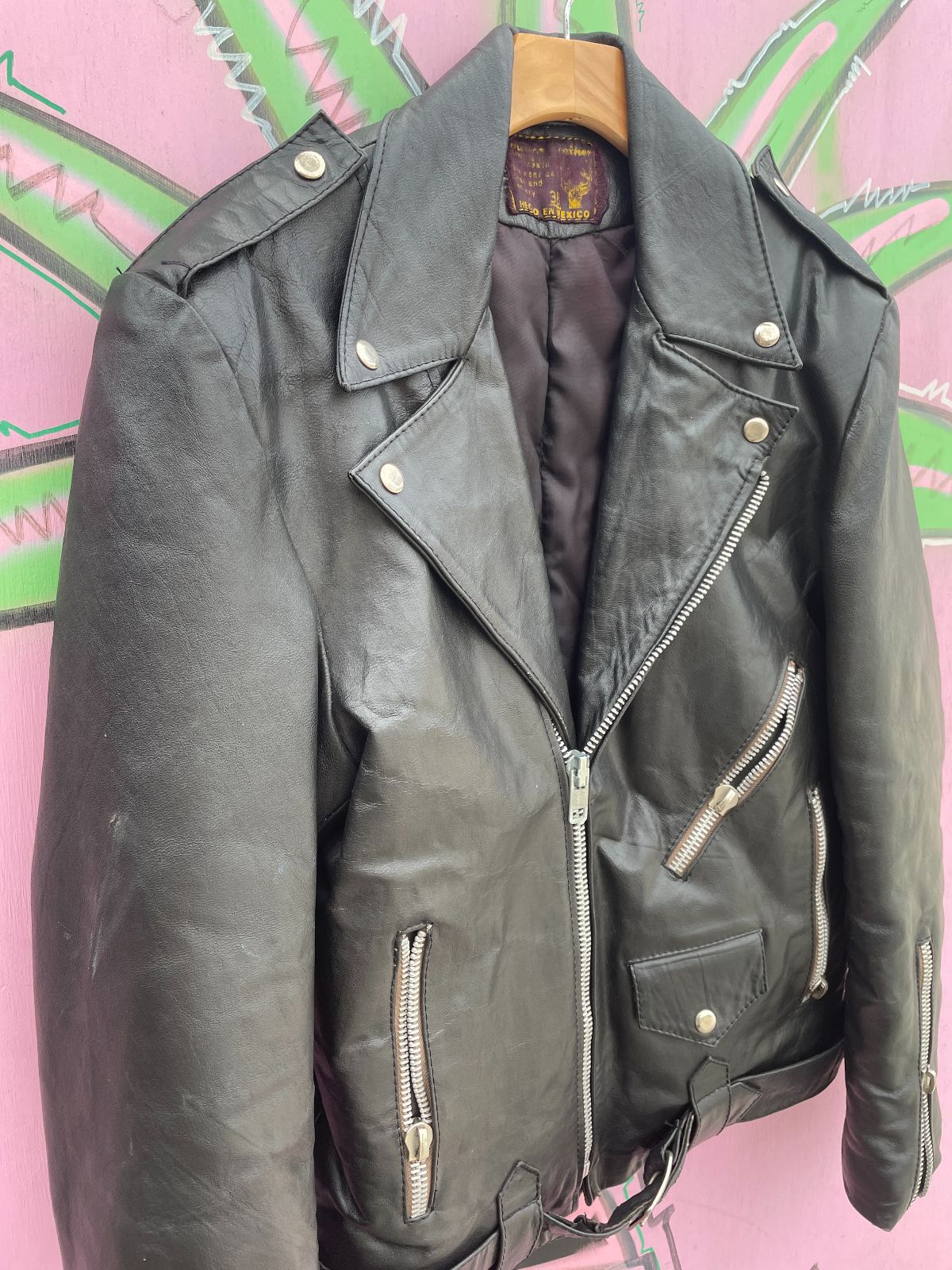 MADE IN MEXICO BELTED LEATHER MOTORCYCLE JACKET,