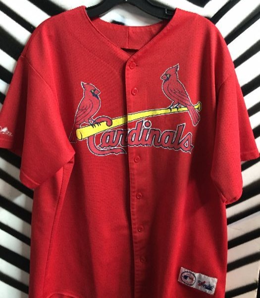 St. Lewis Cardinals baseball jersey, Mark McGuire #25, red shirt with red/white/yellow designs, size XL