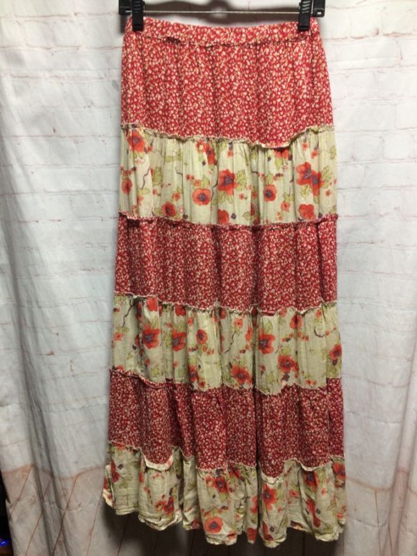 HIPPIE PRAIRIE MAXI SKIRT W/ PATCHWORK MIXED FLORAL PRINT