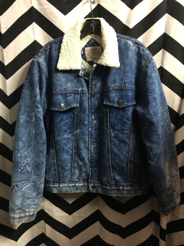 1990’S MARBLE WASH DENIM JACKET W/ SHERPA LINING