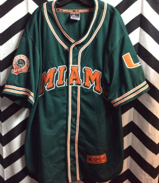 Miami Hurricanes football jersey, button-up, green/orange, size XL