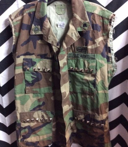 MILITARY VEST – CUTOFF SLEEVES & STUDS – CAMO PRINT DESIGN