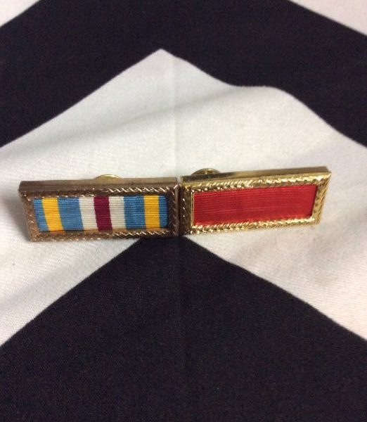 MILITARY PIN GOLD BOXES W/ STRIPES AND RED