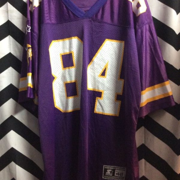 Starter football jersey, Minnesota Vikings, #84 Moss, screen printed lettering & name, purple/white/yellow, size L