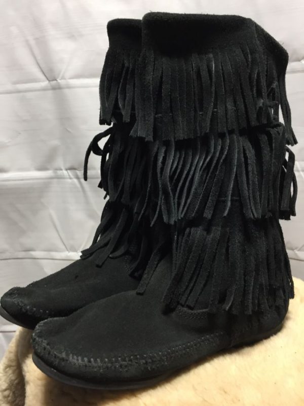MINNETONKA FRINGED SUEDE MID HEIGHT MOCCASIN/BOOTS