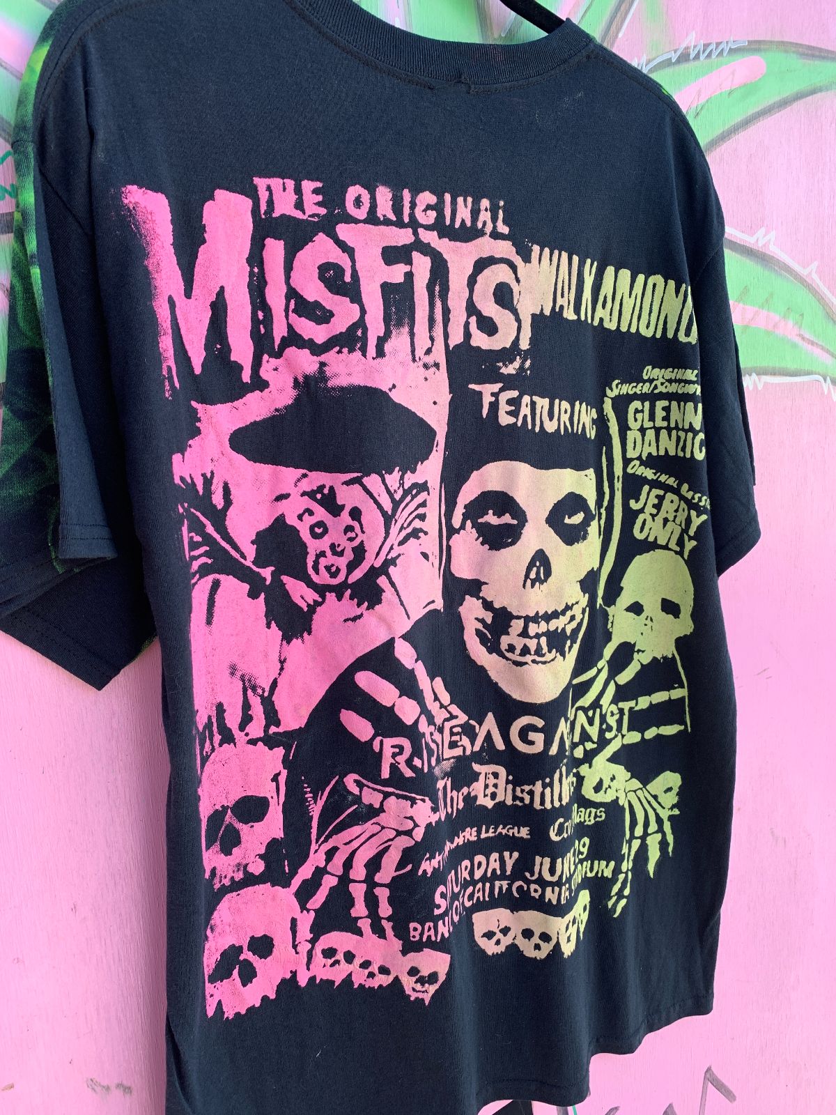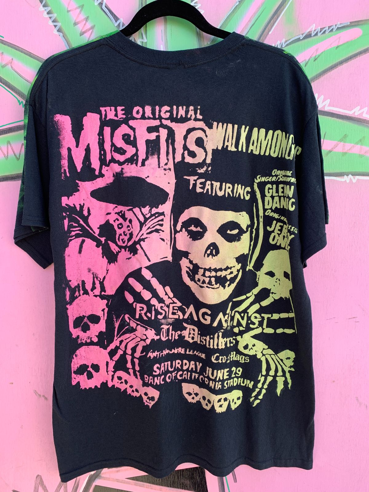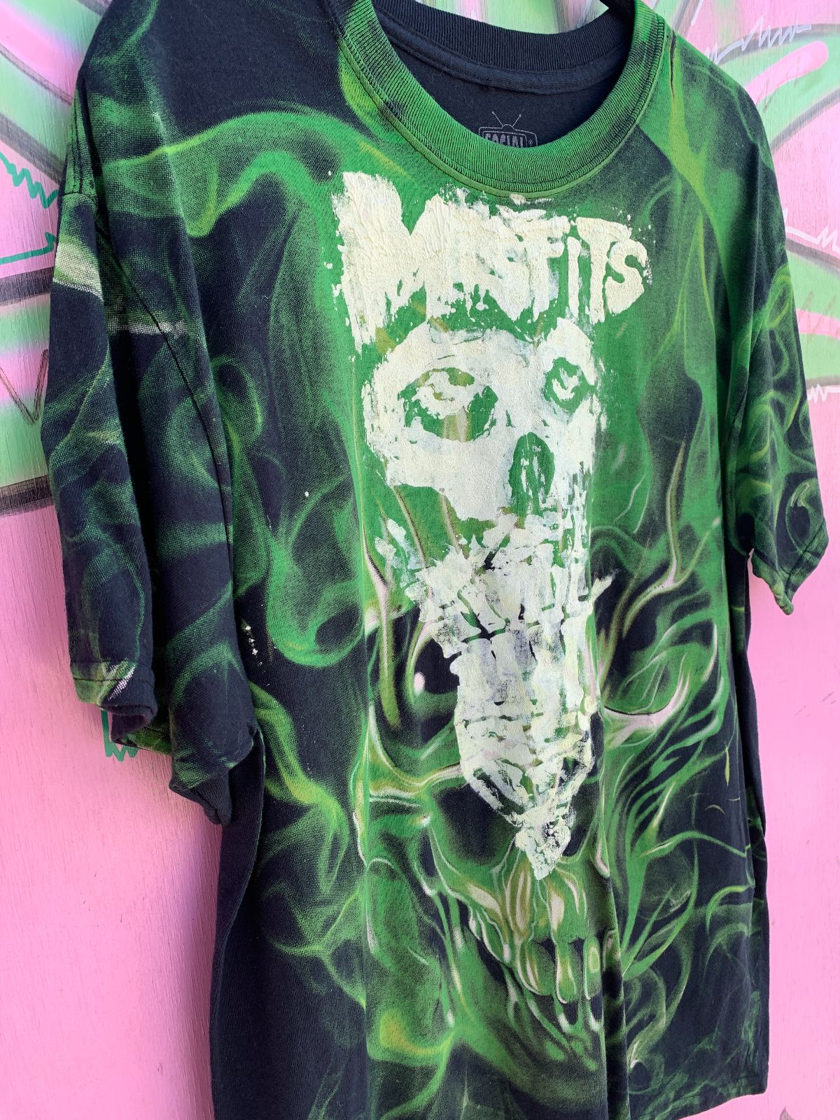 MISFITS CUSTOM HAND PAINTED OMBRE OVER SMOKING SKULL GRAPHIC T-SHIRT