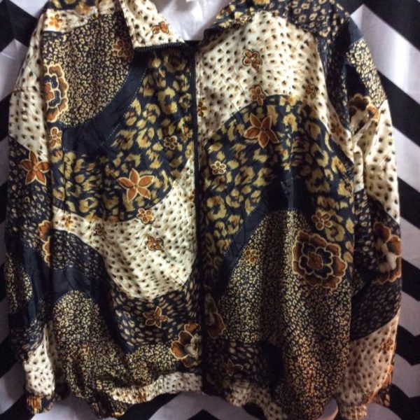 WINDBREAKER JACKET – ZIP-UP – LEOPARD PRINT MIXED WITH FLORAL PATTERN DESIGN