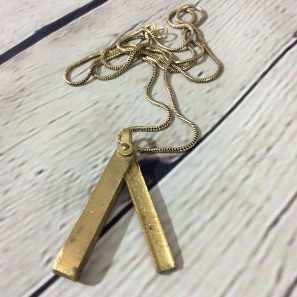 Recreation necklace, collapsible ruler, mini, heavy, antique brass, snake chain, brass, size long