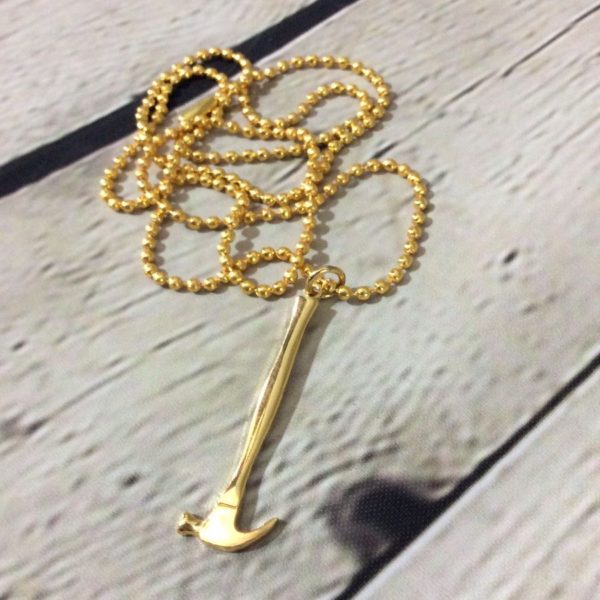 GOLD METAL HAMMER CHARM W/ BALL CHAIN NECKLACE