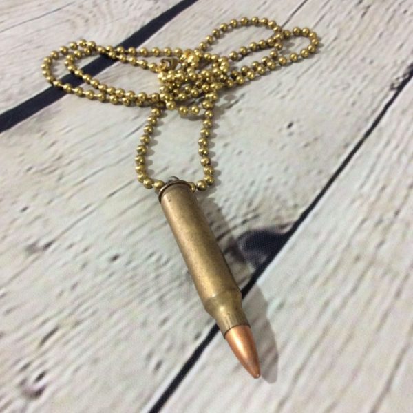 RIFLE BULLET CASING NECKLACE W/ BRASS BALL CHAIN