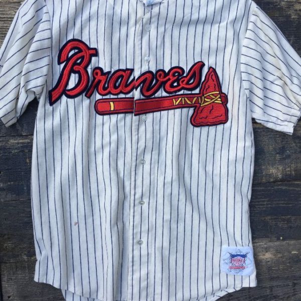 MLB ATLANTA BRAVES PINSTRIPE JERSEY W/ EMBROIDERED LOGO