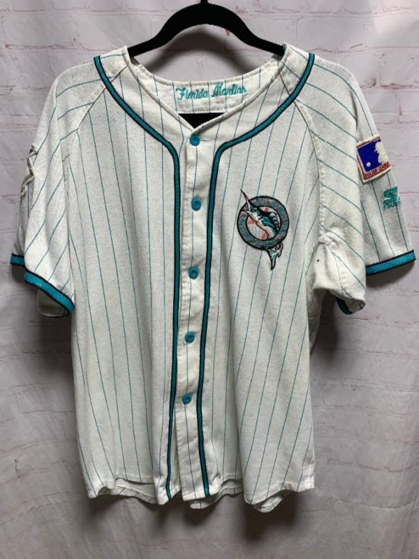 MLB FLORIDA MARLINS PINSTRIPED FABRIC BASEBALL JERSEY