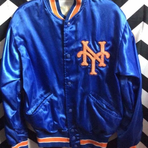 BASEBALL JACKET – SATIN – BUTTON-UP – NEW YORK METS – MLB