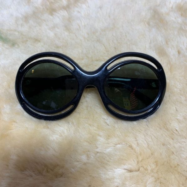 1960’s sunglasses, mod styling, chunky round frames with a separate outer rim and space between, made in Italy, black/dark gray