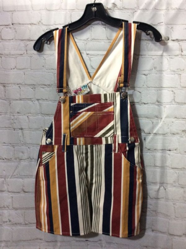 MULTI VERTICAL STRIPED OVERALLS SHORTS