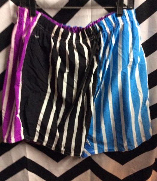 SWIM TRUNKS – MULTI-COLOR STRIPE PATTERN – COLOR BLOCK DESIGN