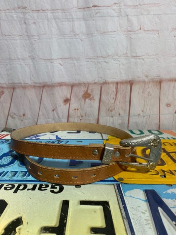 NARROW LEATHER WESTERN STYLE BELT TWO-TONE HARDWARE