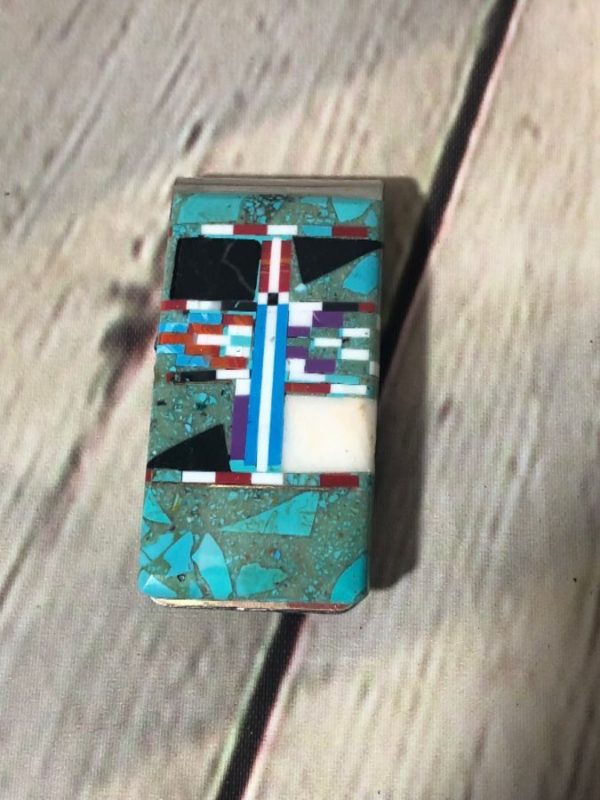 NATURAL MIXED STONE INLAY MONEY CLIP TURQUOISE