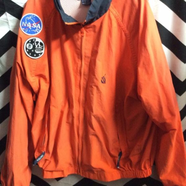 Nautica windbreaker jacket, zip-up, thick, embroidered flag logo back design, orange/white/yellow/black, size XXL as is